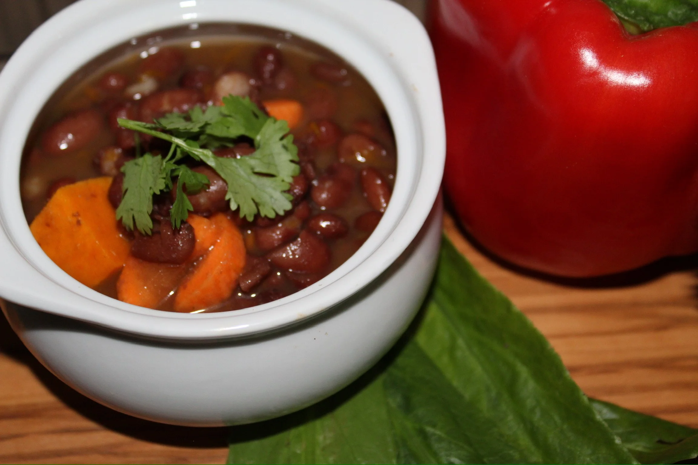 A trio of root veggies—yautĂa, sweet potato, and yam—brought to life with corn, peppers, and fresh herbs. Hearty and flavorful.